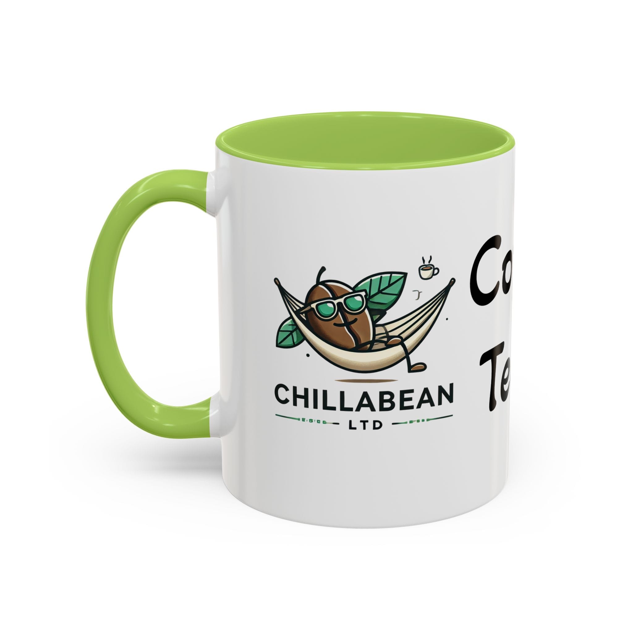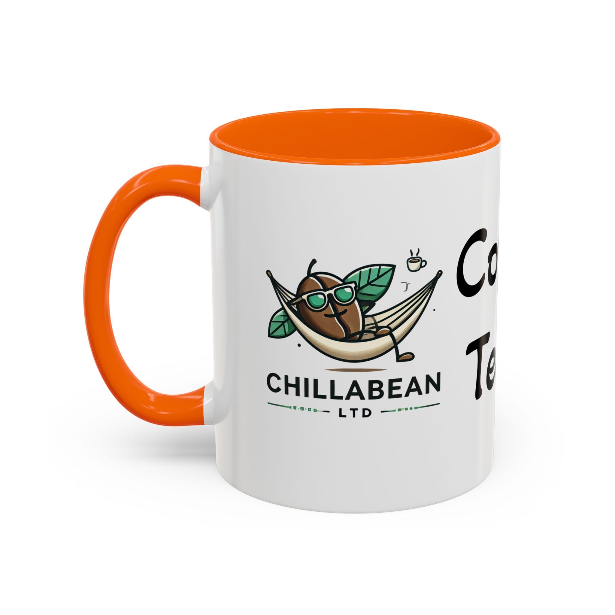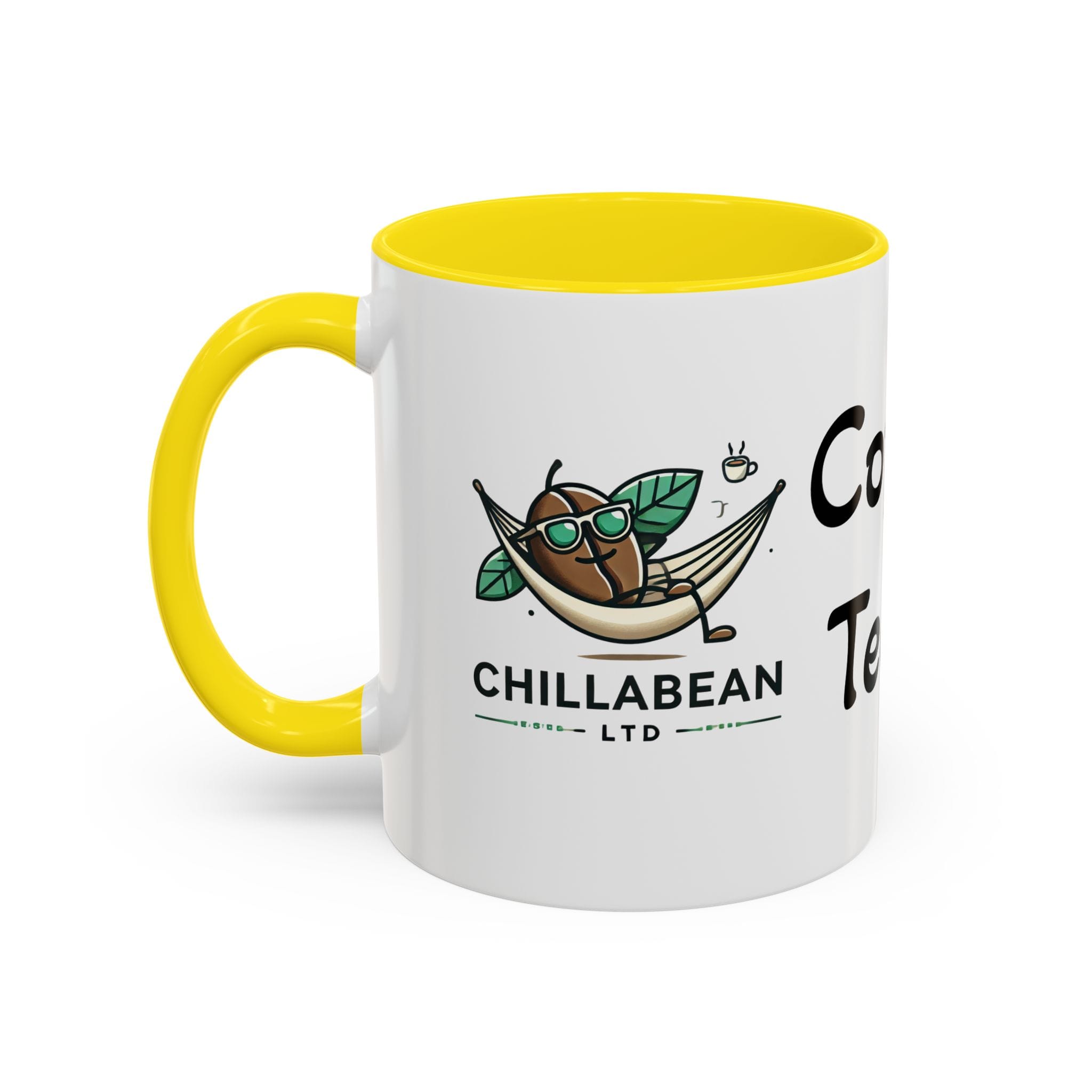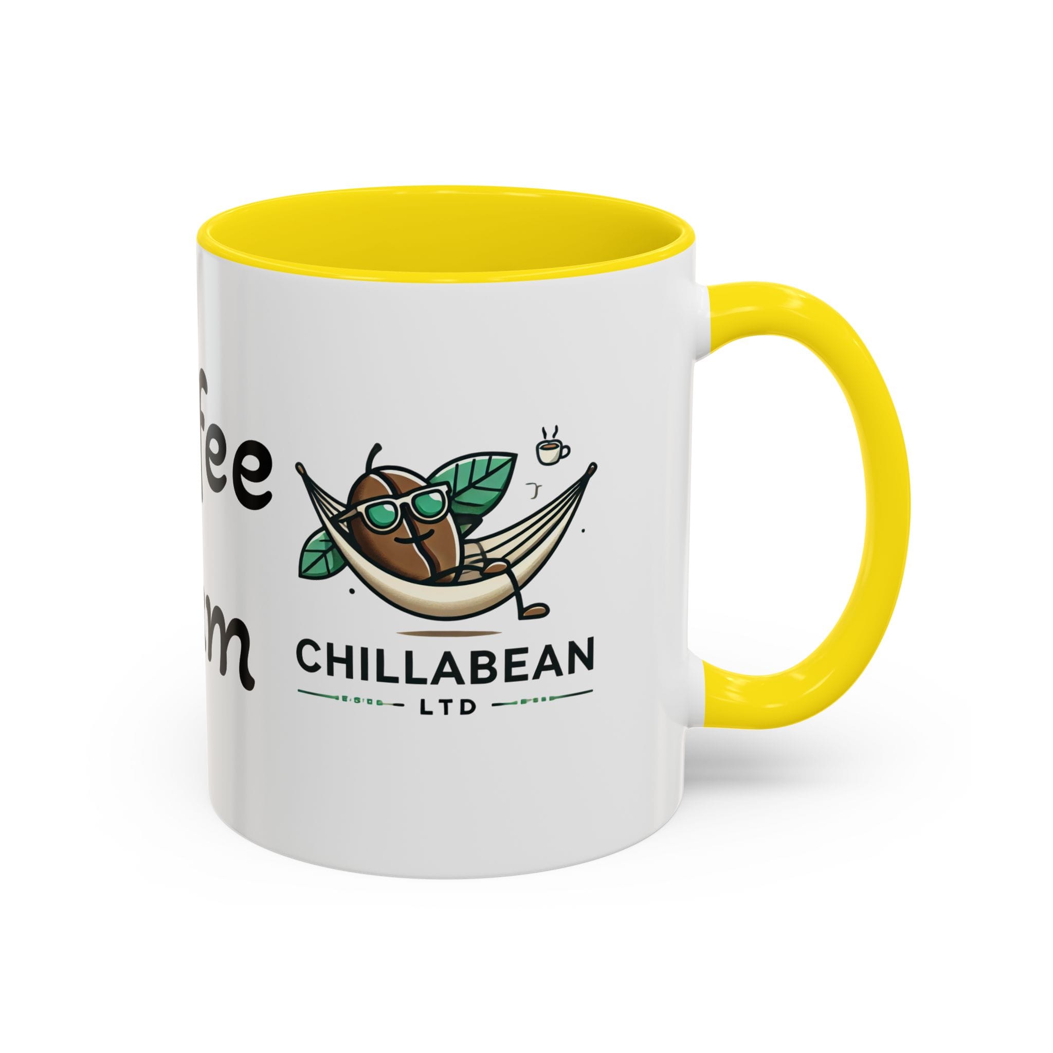 A vibrant Accent Coffee Mug designed to support the coffee brand doing more for the people. Chill a bean limited design gives a relaxed and trendy vibe, perfect for coffee enthusiasts looking to add some personality to their morning routine. Ideal for people who appreciate unique designs and want to make a statement with their coffee mug. Relevant for coffee lovers, trendy individuals, and those looking for a cool gift for holidays or special occasions.