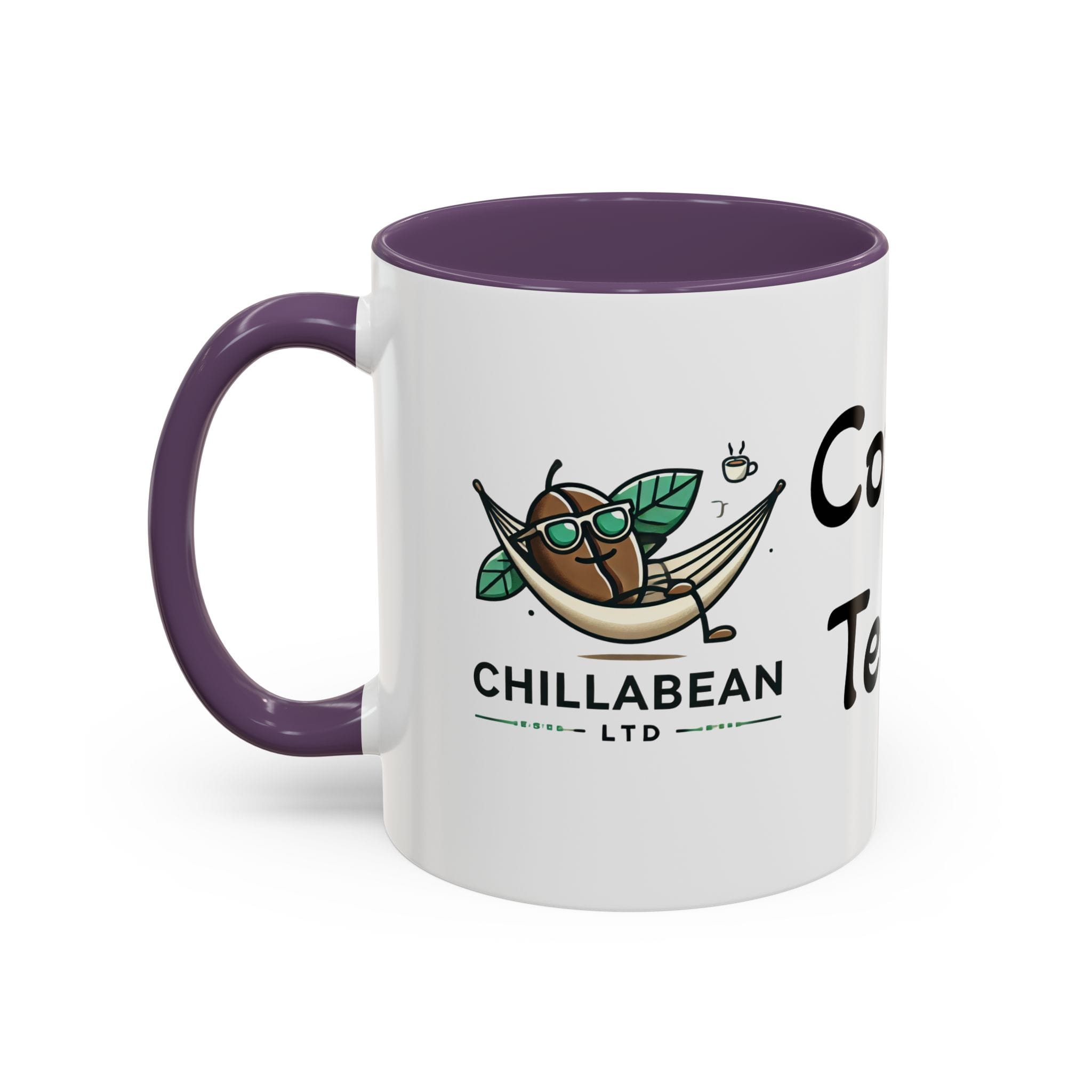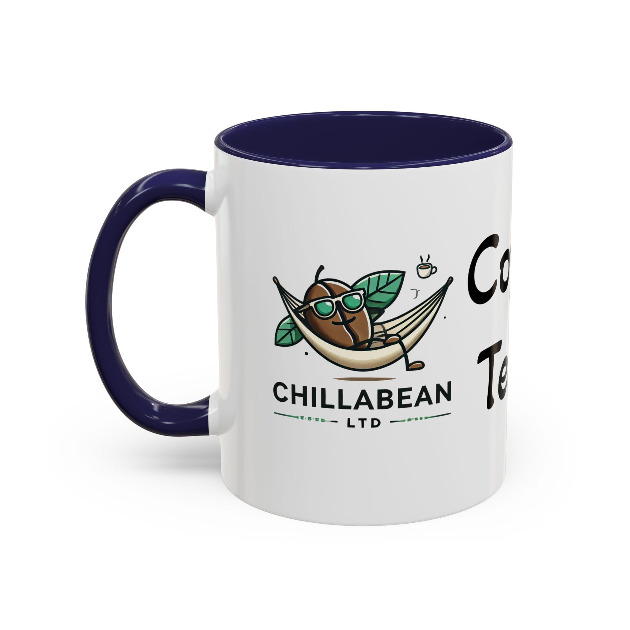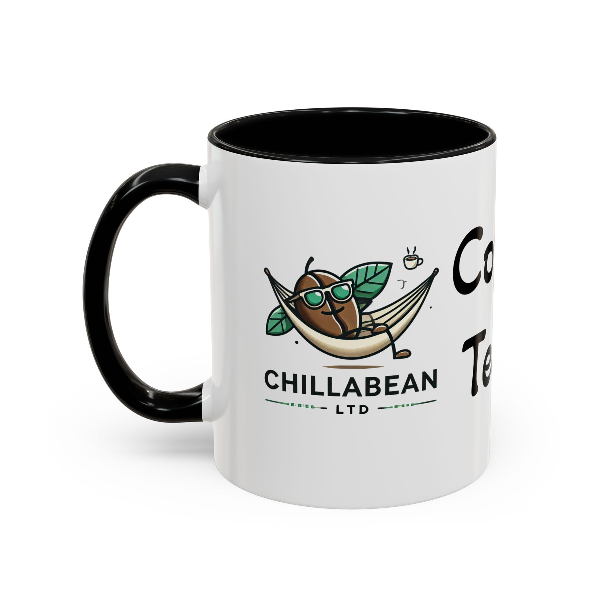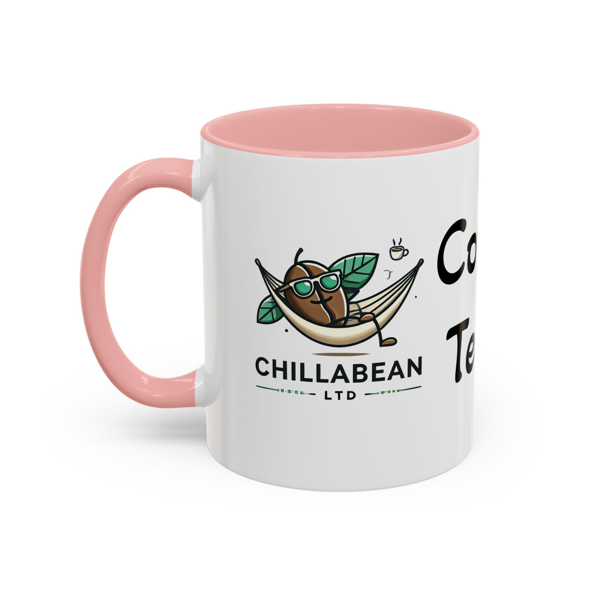 A vibrant Accent Coffee Mug designed to support the coffee brand doing more for the people. Chill a bean limited design gives a relaxed and trendy vibe, perfect for coffee enthusiasts looking to add some personality to their morning routine. Ideal for people who appreciate unique designs and want to make a statement with their coffee mug. Relevant for coffee lovers, trendy individuals, and those looking for a cool gift for holidays or special occasions.